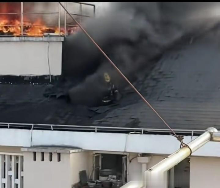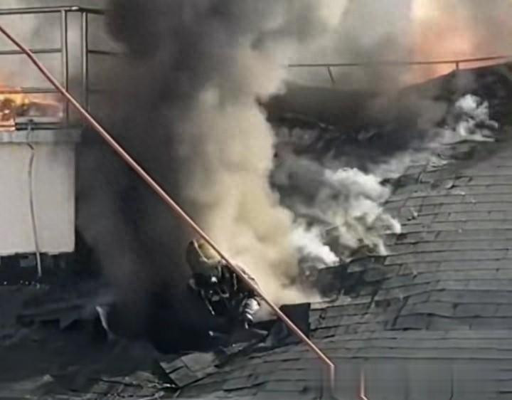百家乐官网 上海静安区大火! “英勇消防员”冲破屋顶施救