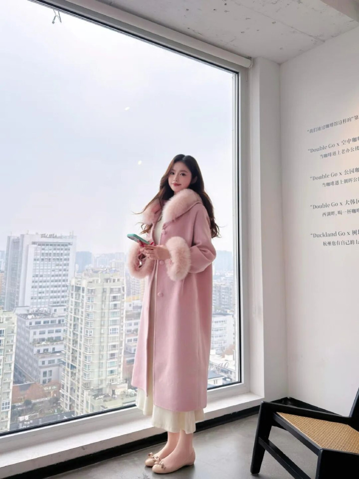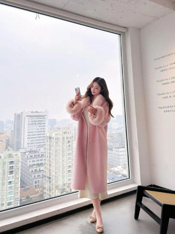 ag百家乐app 粉色大衣真的好温柔好显白呀!