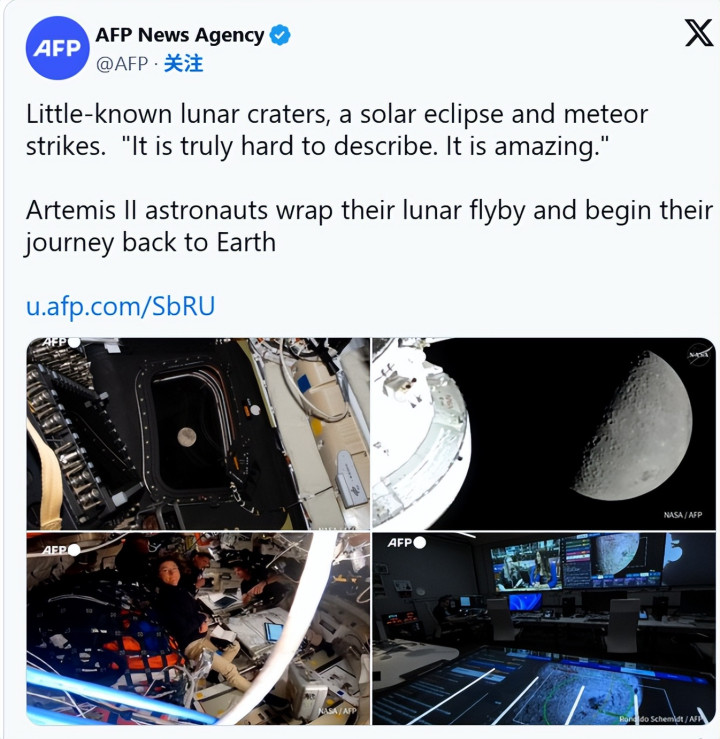 在职务简报中,月球科学厚爱东谈主凯尔西·杨抒发了她的讶异,并承认她没思到宇航员们会在此次任务中目睹这样的事件。