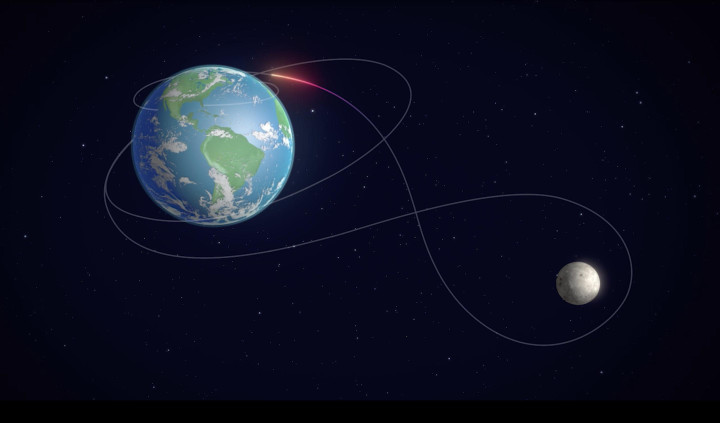 本次任务见解实施载东谈主绕月飞行,任务袭取了月球解放复返轨谈(lunar free return trajectory),轨谈穿插地月空间,呈现“8”字形。时期飞船对月球进行了飞越,但不被月球引力拿获过问绕月轨谈,后平直转入月地转机轨谈,时期无需进行跨地注入点燃。月球解放复返轨谈能在航天器出现故障的情况下将航天员安全带回地球。