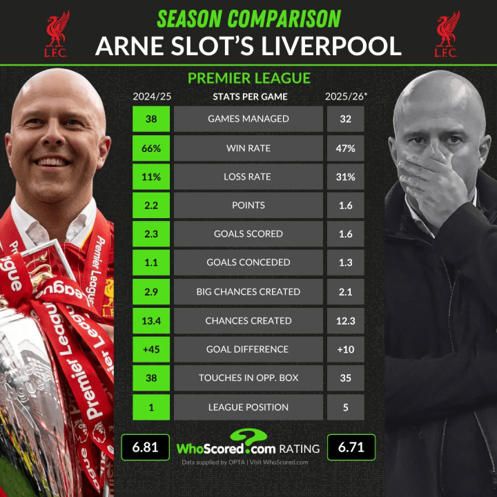 ag百家乐 斯洛特捏教利物浦两个英超赛季对比: 胜率、场均得分均下滑