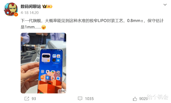 据博主数码闲聊站爆料,下代旗舰有可能作念到0.8mm的窄边框,保守料想也有1mm操纵,正面看起来很惊艳。