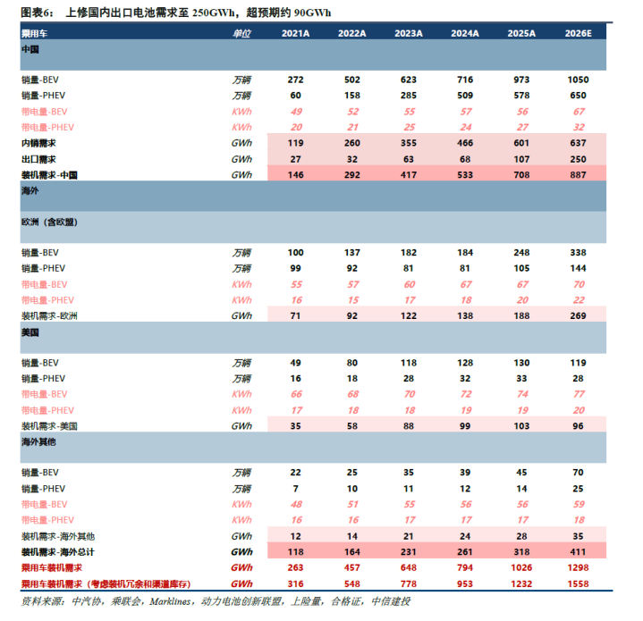 全体来看,除国内出口高增超预期外,欧洲新能源车需求爆发稀奇带来约15-20GWh销量,其他地区原土新能源车高增稀奇带来约10GWh增量,乐不雅预期下26年全球乘用车锂电板需求达1558GWh,同比+26%。