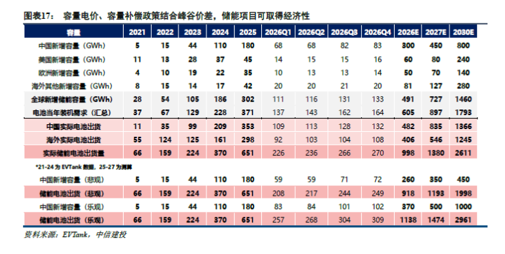 26年储能增量主要来自:(1)商量中国增速接近翻倍,总量达到300-350GWh;(2)欧洲阛阓保握高增,大储将成为增长主体,东欧地区于25-27年提供显贵增量;(3)北好意思阛阓数据中心配储空间大,当今上修10GWh到60GWh;(4)国外其他地区中,澳洲25年新增装机显贵擢升;智利储能需求焕发。商量26年中性预期下储能出货达998GWh,同比+53%;乐不雅预期下储能出货达1138GWh,同比+75%。面前沟通到有限的碳酸锂供给,咱们合计连续上修会受到供给侧收尾,最终是有限的供给往价钱承受度更高的标的达成,因此咱们合计面前本领价钱明锐的卑鄙产业尽管有望超预期但以动态追踪较安妥。