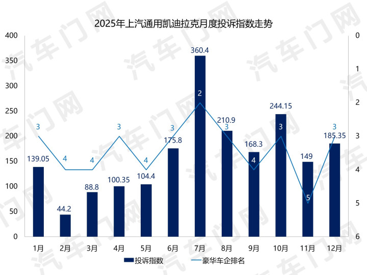 从2025年的月度走势来看,全年大部分技能里,上汽通用凯迪拉克的投诉指数齐参加了豪华车企投诉指数榜单前四以致前三。7月份和10月份,上汽通用凯迪拉克投诉指数出现一大一小两次波动。这两个月,上汽通用凯迪拉克齐际遇了汇聚投诉。