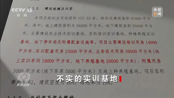 4月14日,总台《焦点访谈》栏目报说念山东临沂莒南县农业实训基地关系问题,一个投资7个多亿的“农业实训基地”却在建成之后莫得本体用于农业实训。