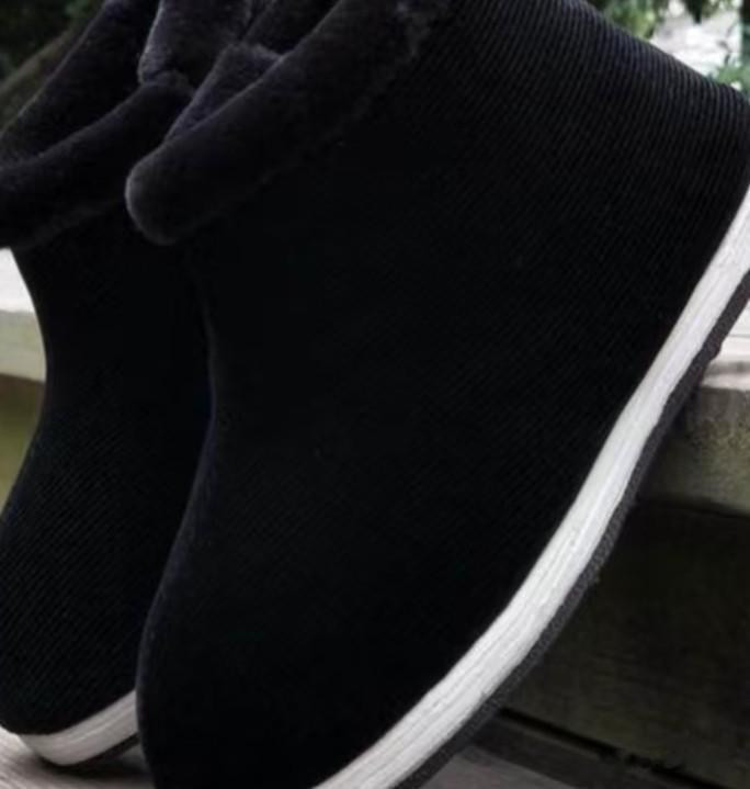 最没想到都是,她还专门给我做了一双大棉鞋,就是那种黑色灯芯绒,里面是纯棉花,底子是千层底,全部手工缝制的老布鞋。
